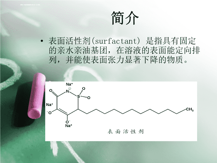 当溶液中含有表面活性剂时,表面活性剂分子会自动富集到溶液表面并产生定向排列,在溶液中形成正吸附。正吸附改变了液体的表面性质,从而降低溶液的表面张力。
